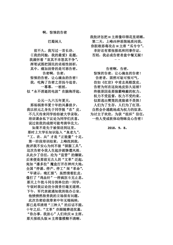 啊,惊悚的告密