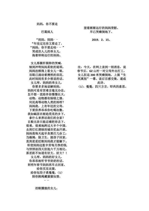 妈妈,你不要走